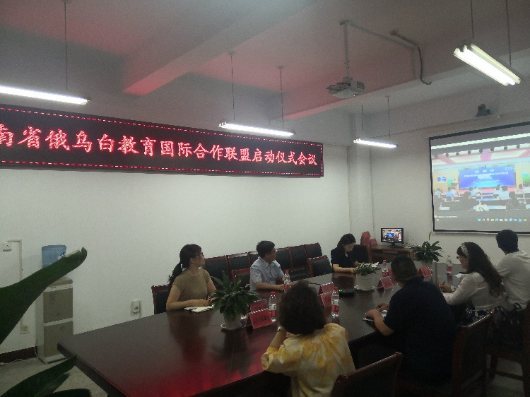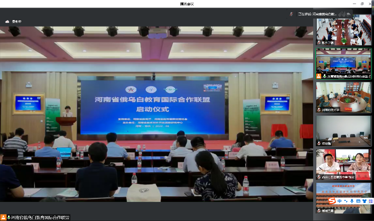 2022年6月17日上午9时,河南省俄乌白教育国际合作联盟启动仪式-暨俄乌白教育国际合作高校-高中对接会在郑州市加信文轩酒店举行,本次会议由河南省教育厅主办,河南省教育对外开放战略研究中心承办。郑州大学、河南大学、2138cc太阳集团等28所省内本专科俄乌白中外合作办学项目高校,郑州36中等41所开设俄语班高中相关人员通过线下和线上方式参会。我校2138CC太阳集团院长周勇、副院长刘亚娜及相关管理人员、外国语学院副院长朱瑶瑶、俄语教研室主任杜荣、机电工程学院白俄项目负责人肖淼鑫参加线上会议。