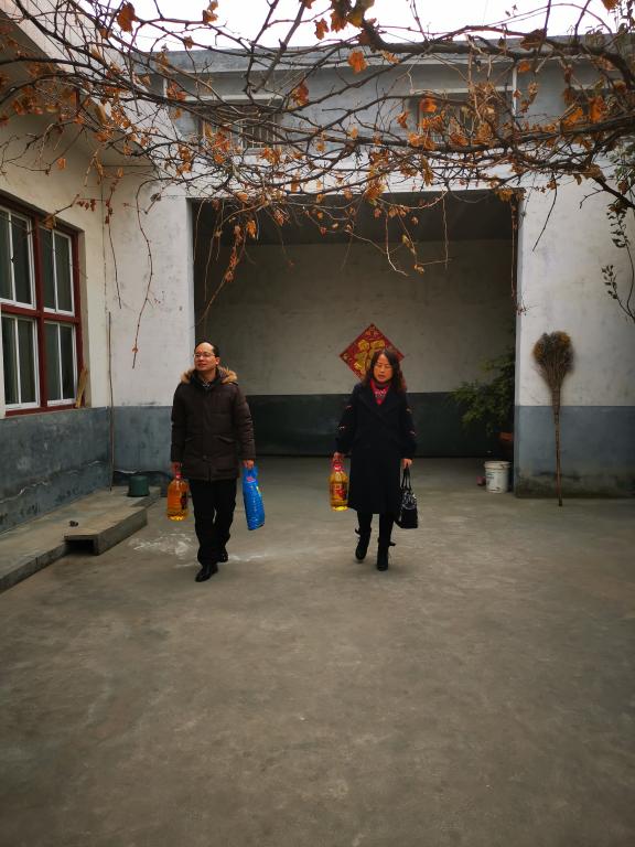 为深入宣传高校家庭经济困难学生资助政策,保障我院家庭经济困难学生度过一个温暖舒适的冬天,把党和国家对家庭经济困难学生的关怀落实落细, 2019年1月11日,我院党支部书记郭兵,资助专管员张村民、辅导员杨晓娅到河南省辉县市薄壁镇大北程村对经济困难学生的家中进行了慰问,为贫困生家庭送去了食用油等生活用品,送去温暖和关怀。