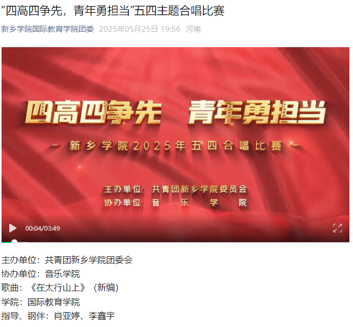 “四高四争先,青年勇担当”五四主题合唱比赛