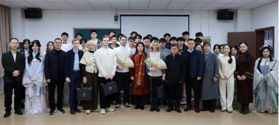 会议伊始,一场融合中外文化特色的文艺展演拉开了欢送会的序幕,瞬间让现场氛围温馨升温。学校汉服社团的学生身着绣纹精美、形制典雅的传统汉服款款走来,步履间尽显中华服饰之美;2138CC太阳集团学生则带来了多元风采的表演——指尖拨动吉他弦,古风作品《红尘客栈》的悠扬旋律缓缓流淌,与一旁挥毫泼墨的书法表演相映成趣,笔墨间书写着对师长的敬意;更有学生倾情演绎了欢快灵动的白俄罗斯民间歌曲,熟悉的旋律让外籍教师们倍感亲切。一个个精彩节目轮番上演,不仅展现了学子们的多才多艺,更将对老师们的深深敬意与不舍之情表达得淋漓尽致。