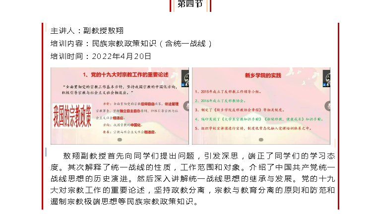 新冠肺炎疫情进一步拉开了我国高等学校线上教学的大幕,大学生党课也不例外。用伟大建党精神滋养党性修养,在夯实思想政治根基中坚定信仰信念,进而带领全体学员传承红色血脉、锤炼品德修为、共同成长为能担当民族复兴大任的时代新人。