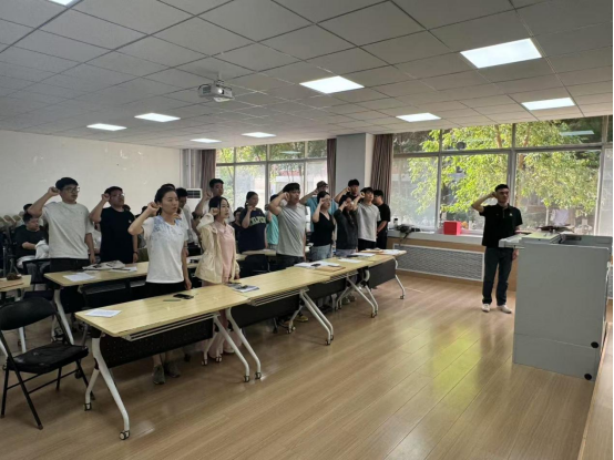 在这个神圣而光荣的时刻,接收的预备党员们由正式党员亲手佩戴党员党徽。闪耀的党徽佩戴在胸前,不仅是一份荣誉,更是一份沉甸甸的责任。紧接着,在正式党员的共同见证下,新预备党员们面向鲜红的党旗,庄严地举起右拳,齐声宣读入党誓词。“我志愿加入中国共产党…… 随时准备为党和人民牺牲一切,永不叛党!” 铿锵有力的誓言在会场久久回荡,震撼着每一位党员的心灵,这铮铮誓言充分表达了他们为共产主义事业奋斗终身的坚定信念和决心。