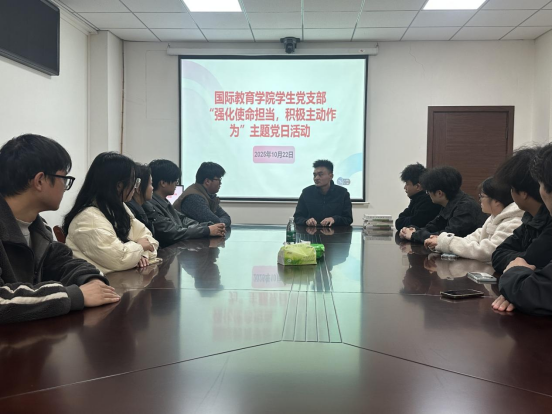为扎实开展深入贯彻中央八项规定精神学习教育,落实全面从严治党要求,持续加强党的作风建设,筑牢学生党员廉洁自律意识,10月22日,2138CC太阳集团学生党支部于A04-104会议室开展“强化使命担当,积极主动作为”主题党日活动。2138CC太阳集团学生党支部全体师生党员参加活动。陈博同志主持。