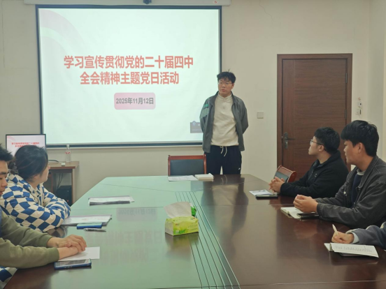 为深入学习贯彻中国共产党第二十届中央委员会第四次全体会议精神,引导青年党员深刻把握新时代党的创新理论,11月12日上午,我院学生党支部在A04-104党员活动室组织开展主题党日活动。学院学生党支部全体在校党员参加活动。