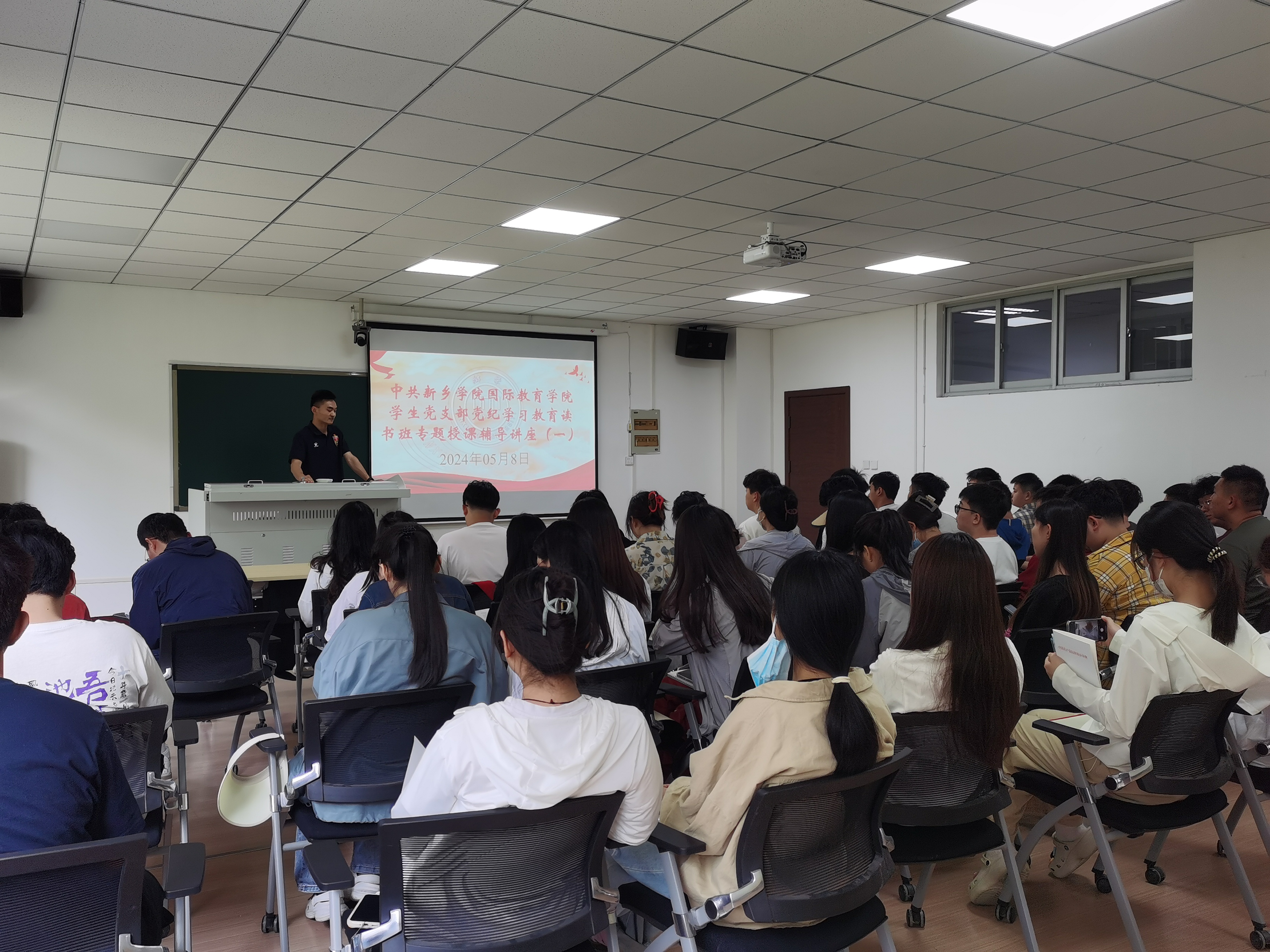 在全党开展党纪学习教育,是加强党的纪律建设、推动全面从严治党向纵深发展的重要举措。根据学校和学院党纪学习教育有关会议精神,为深入推进党纪学习教育走深走实,5月8日下午,学生党支部在A04-106开展党纪学习教育读书班专题辅导,学生党支部书记陈博作党纪学习教育专题辅导。全体在校学生党员参加了专题辅导。