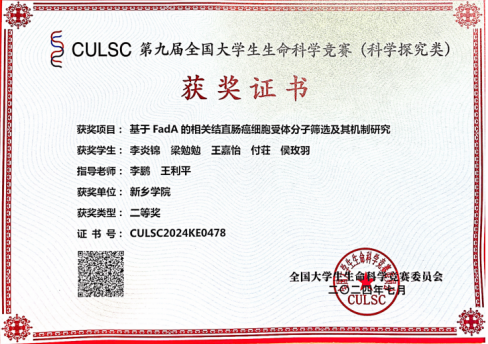 第九届全国大学生生命科学竞赛(科学探究类)二等奖