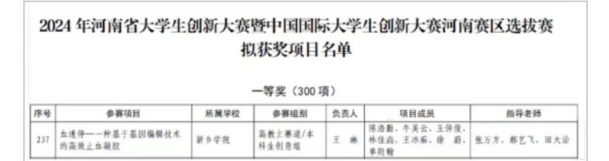 2024年河南省大学生创新大赛暨中国国际大学生创新大赛河南省一等奖