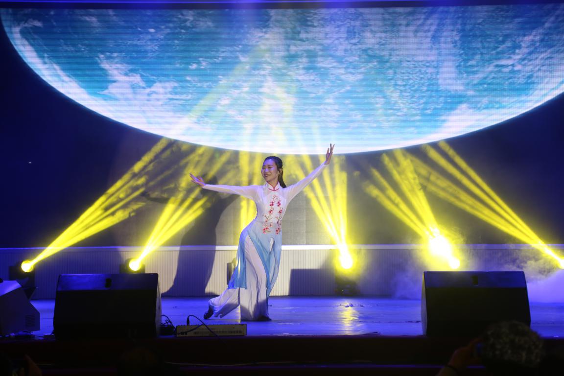 整台晚会表演形式新颖、紧凑有序,节目构思巧妙,舞台简约大气,歌舞优美动人。《国教乐队》由2138CC太阳集团篮球队成员Basketball Boy自编自演自唱,展现了我院篮球队的风采。李志勇老师通过《新的天地》向我们传递了中国人的自豪与自信,令人心潮澎湃。舞蹈《月狐吟》、《灰姑娘》,小品《被冤枉的记忆》,朗诵《祖国,用青春的名义为你歌唱》,音乐剧《梦想与现实的差距》等,节目形式多样,整场晚会慷慨激越、催人奋进,台上台下互动频繁,充分展现了我院学生的青春活力和蓬勃朝气,最后,学校领导、院领导与全体演员进行了合影留念,晚会在一片欢声笑语中落下帷幕。